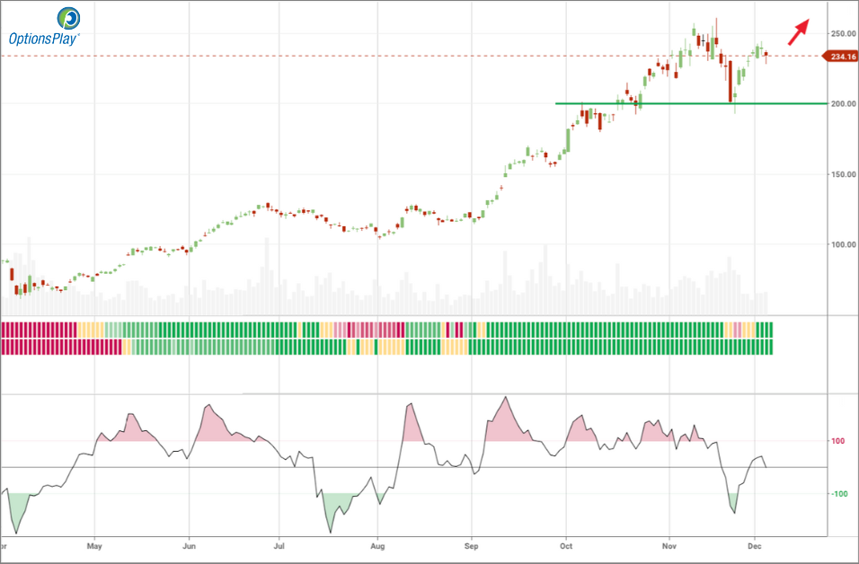 Counter-Trend Signal: This is a bullish trade on a stock that is expected to continue higher over the duration of this trade.