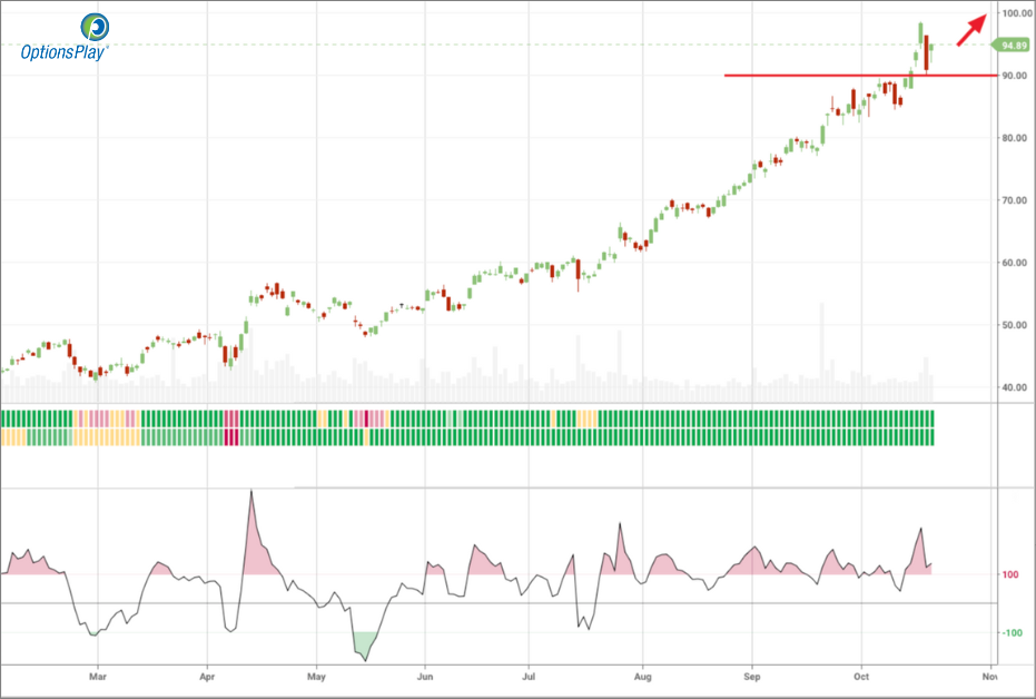 Trend Continuation Signal: This is a bullish trade on a stock that is expected to continue higher over the duration of this trade.