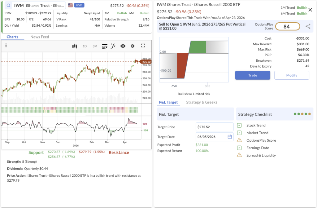 The Trade: Sell to Open the IWM Jun 5, 2026 275/265 Put Vertical @ $3.31 Credit.