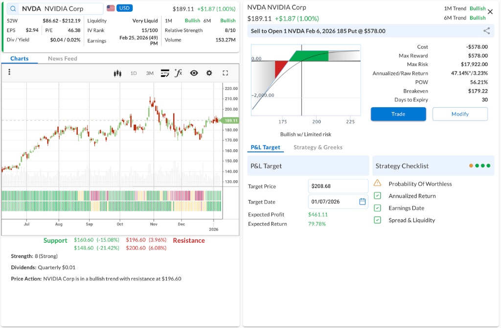 • The Trade: Sell to Open the NVDA Feb 6, 2026 185 Put @ $5.78 Credit.