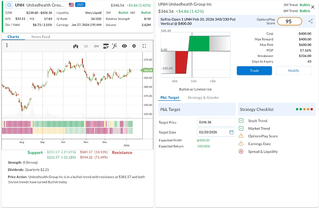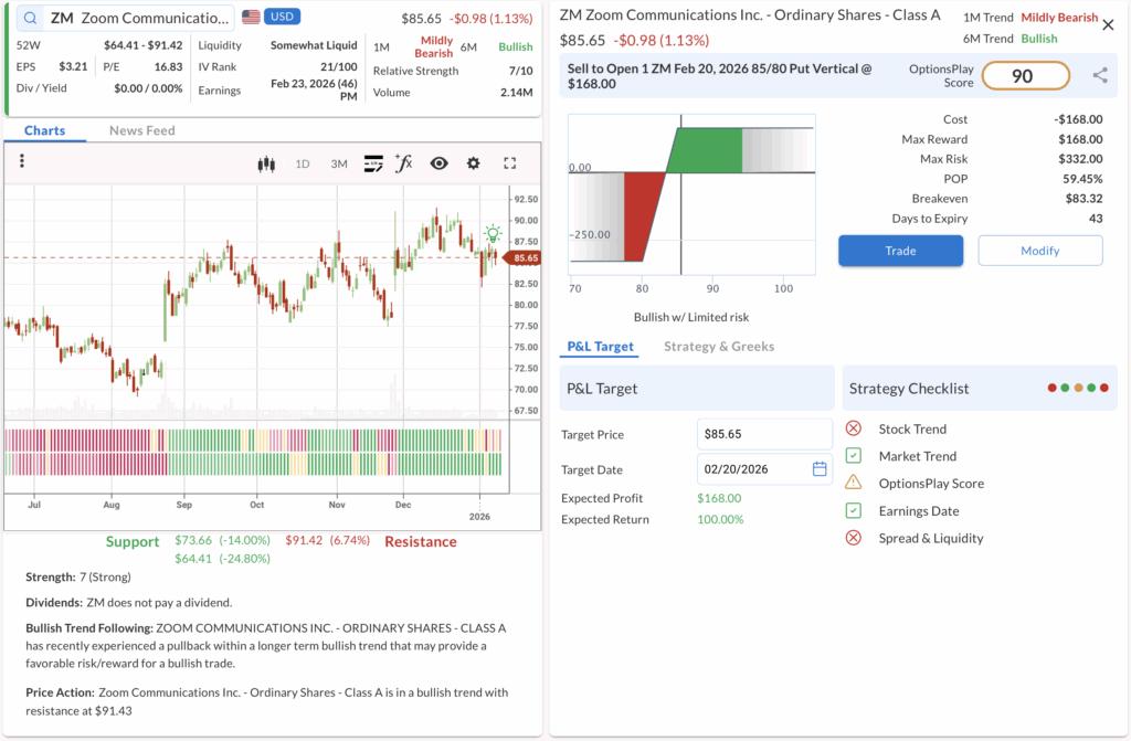 • ⚠️ Warning: Earnings is scheduled for Feb 19, which is prior to expiration. This may require active management or closing the trade early.