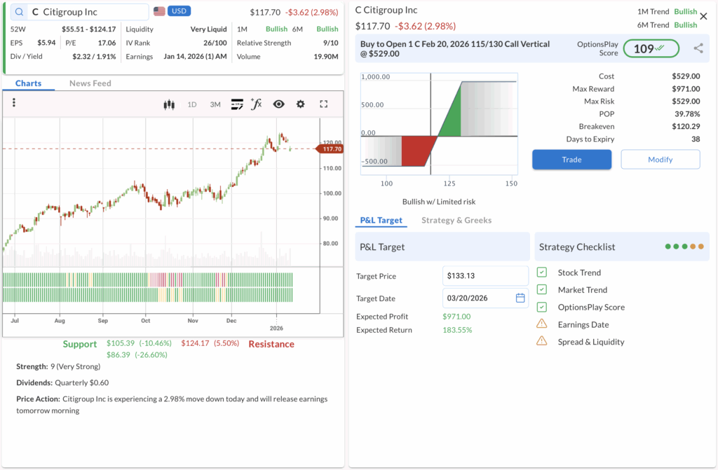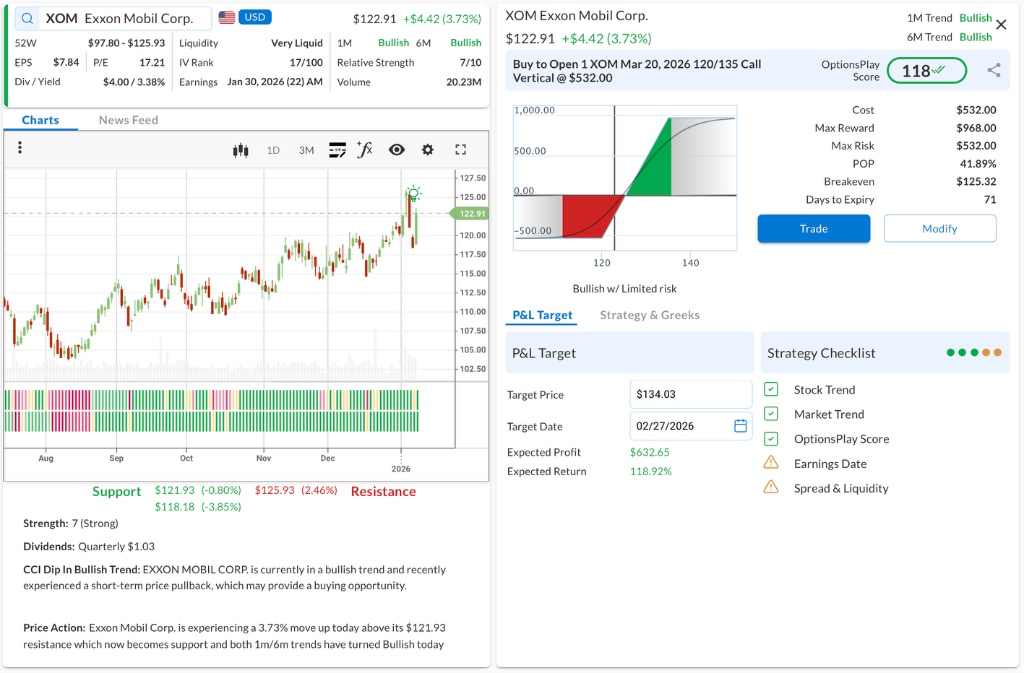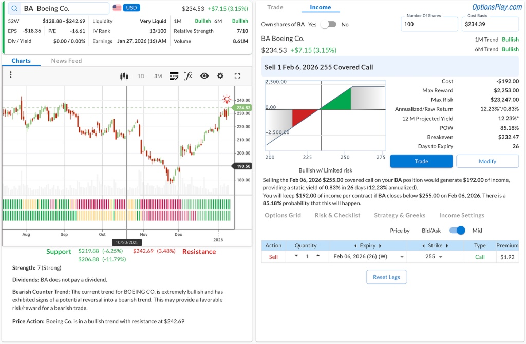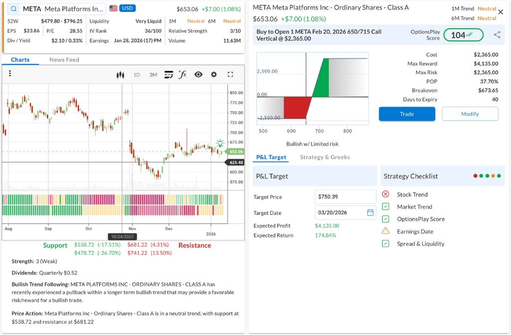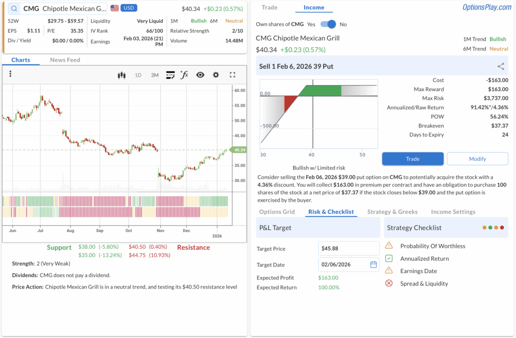 • ⚠️ Warning: Earnings is scheduled for Jan 30, which is prior to expiration. This may require active management or closing the trade early.