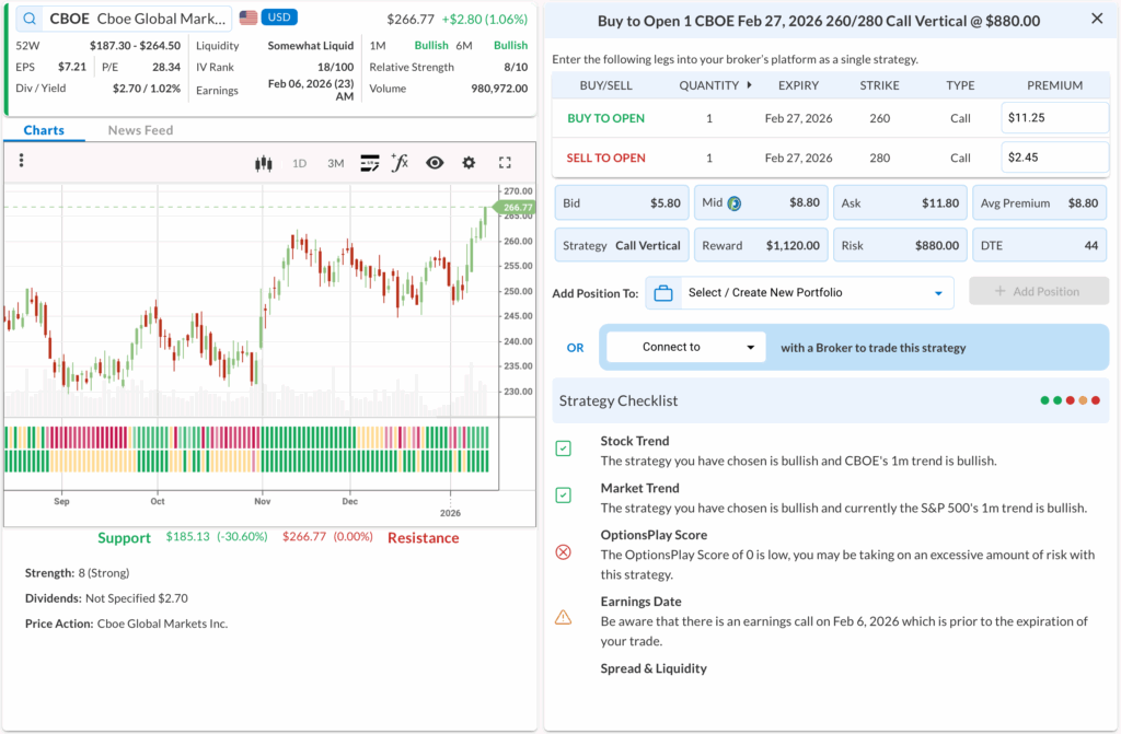 • The Trade: Buy to Open the CBOE Feb 27, 2026 260/280 Call Vertical @ $8.80 Debit.