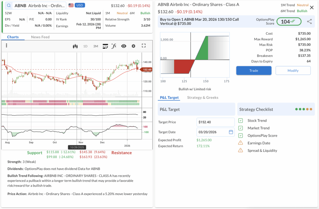• The Trade: Buy to Open the ABNB Mar 20, 2026 130/150 Call Vertical @ $7.35 Debit.