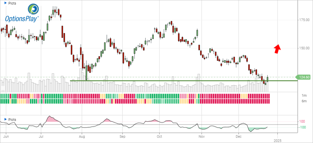 Bullish Credit Spread – Airbnb Inc. (ABNB) – The position is currently down, as the stock has remained range-bound. A breakout above the $135 level is needed to generate upside momentum. With the stock trading near the upper end of its range, we plan to stay the course for now.