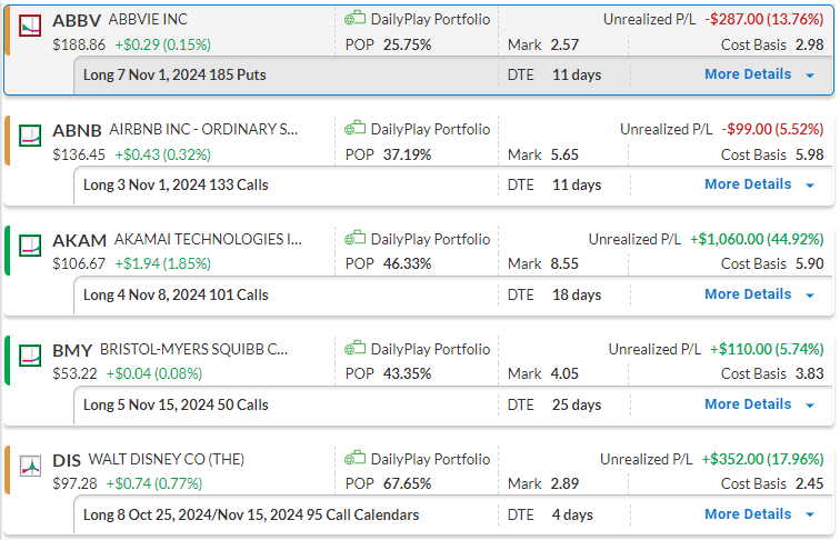 Bullish Credit Spread – Airbnb Inc. (ABNB) – We recently entered this position. The stock was down this week with the general direction of the market and we plan to hold our course at this time.